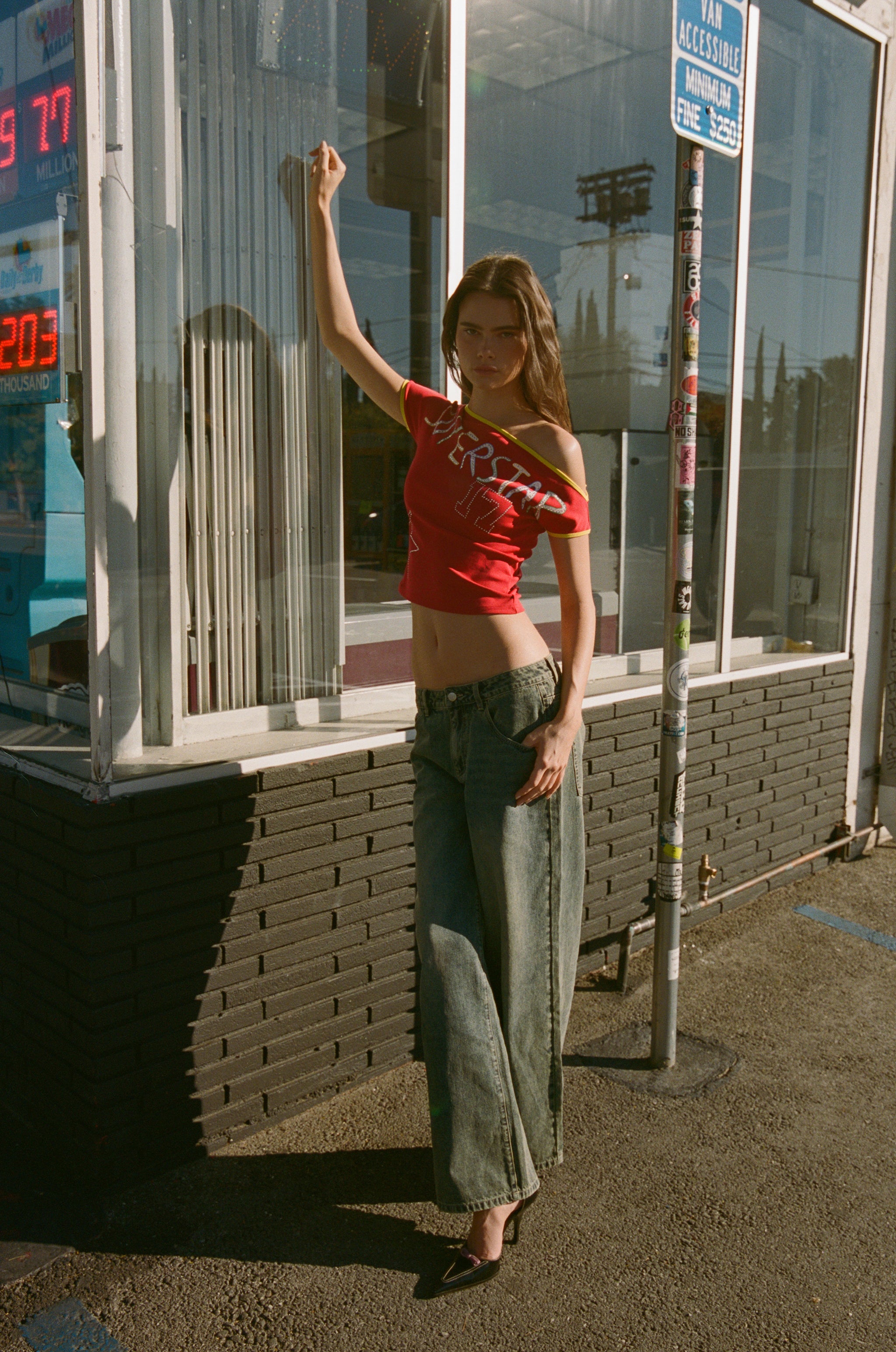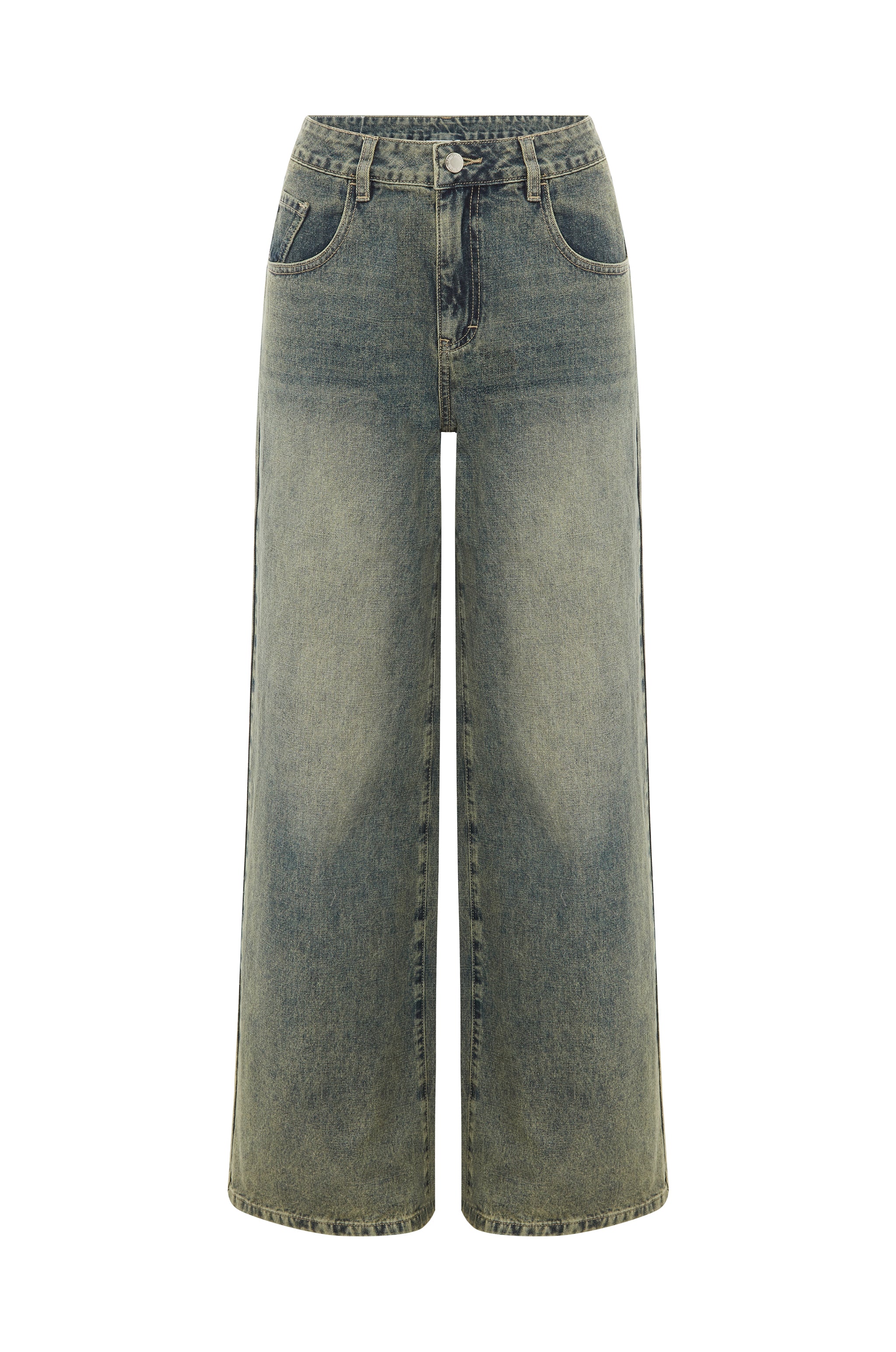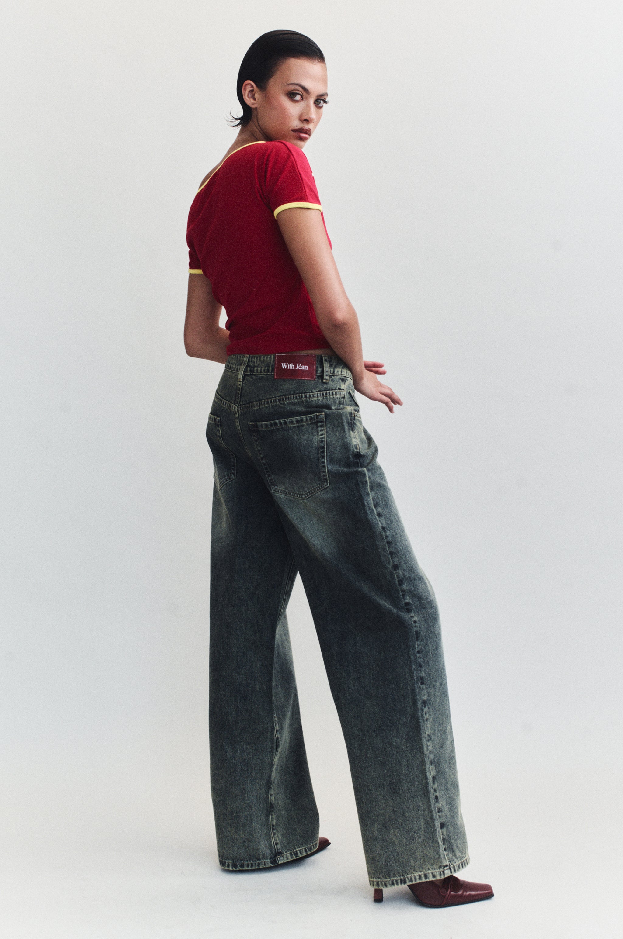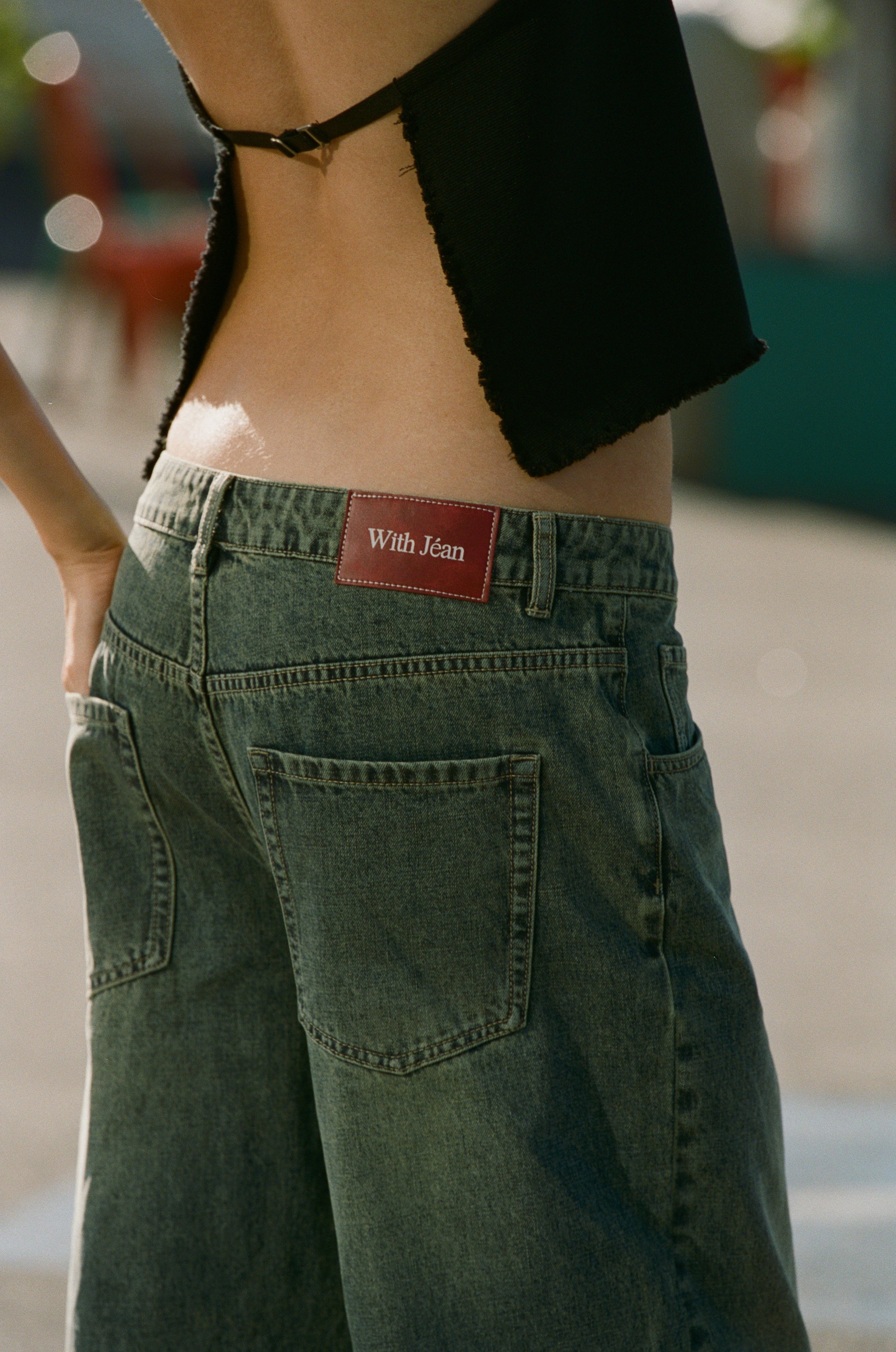 The Iris Jeans are a loose fitted. low rise jean. featuring side and back pockets. belt loops and a zip fly.