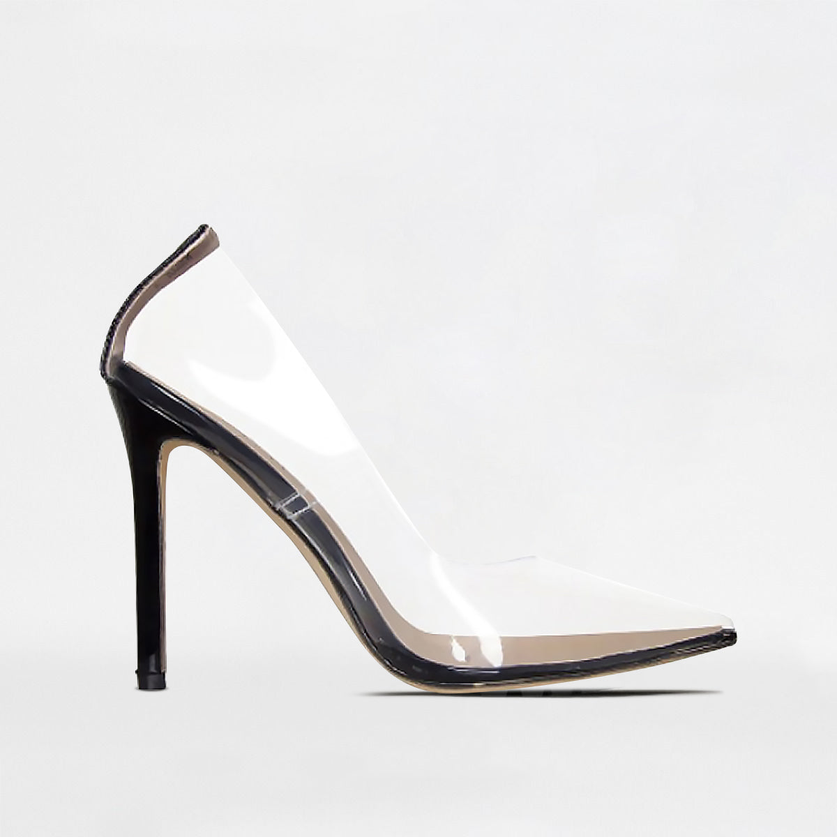 Transparent high heel pumps have a see through. sleek upper made out of vegan synthetic pvc and a stiletto heel and outsole adds some inches to your look. Perfect for festivals and year-round wear!