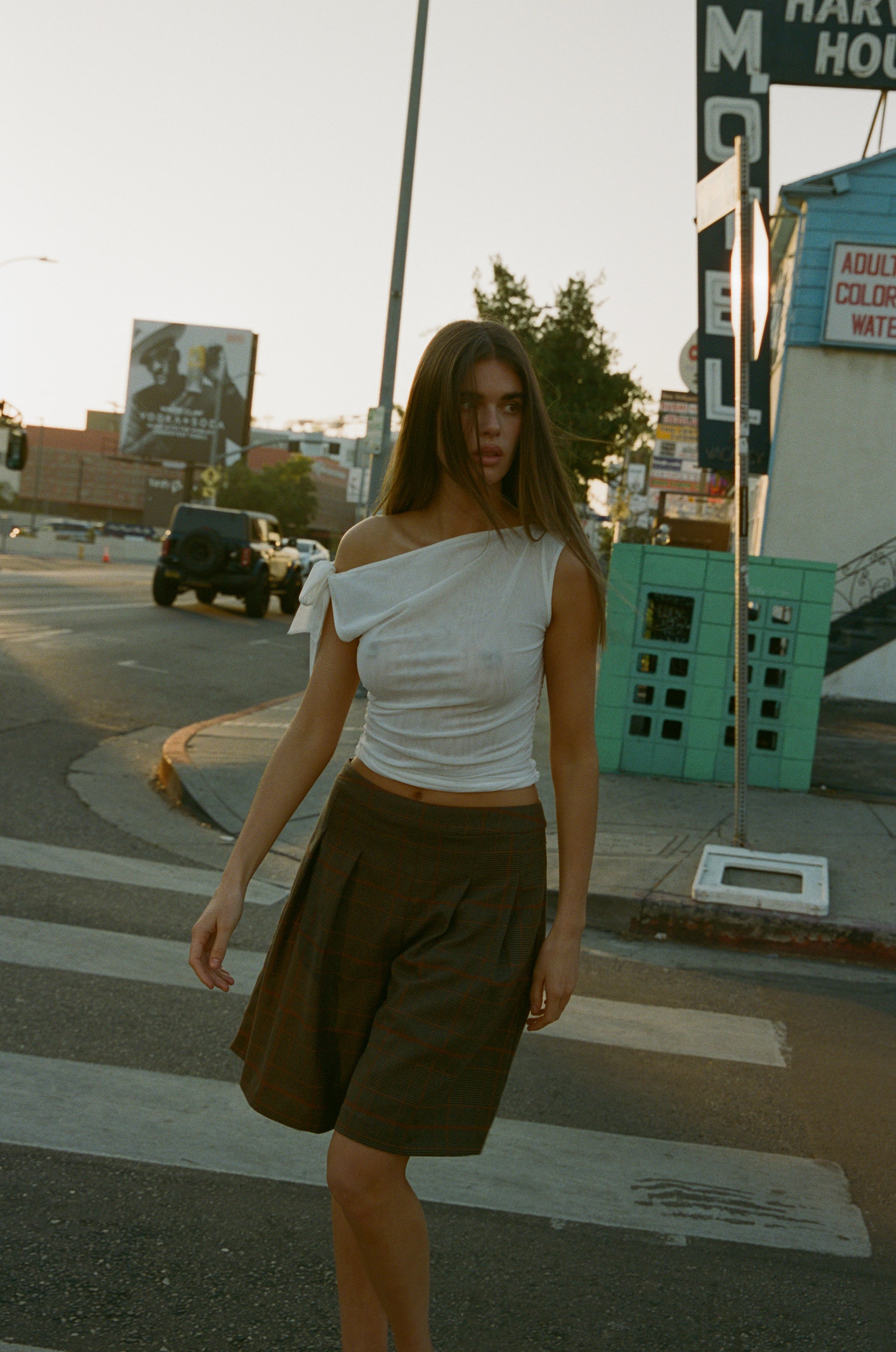 The Lulu Shorts are a loose fitted. low rise short. featuring a wide leg and invisible side zip closure.